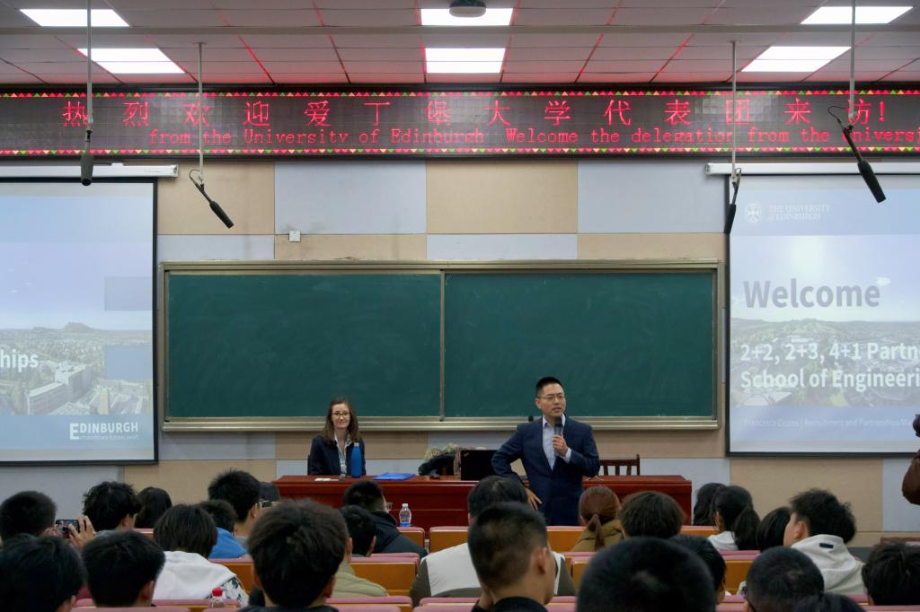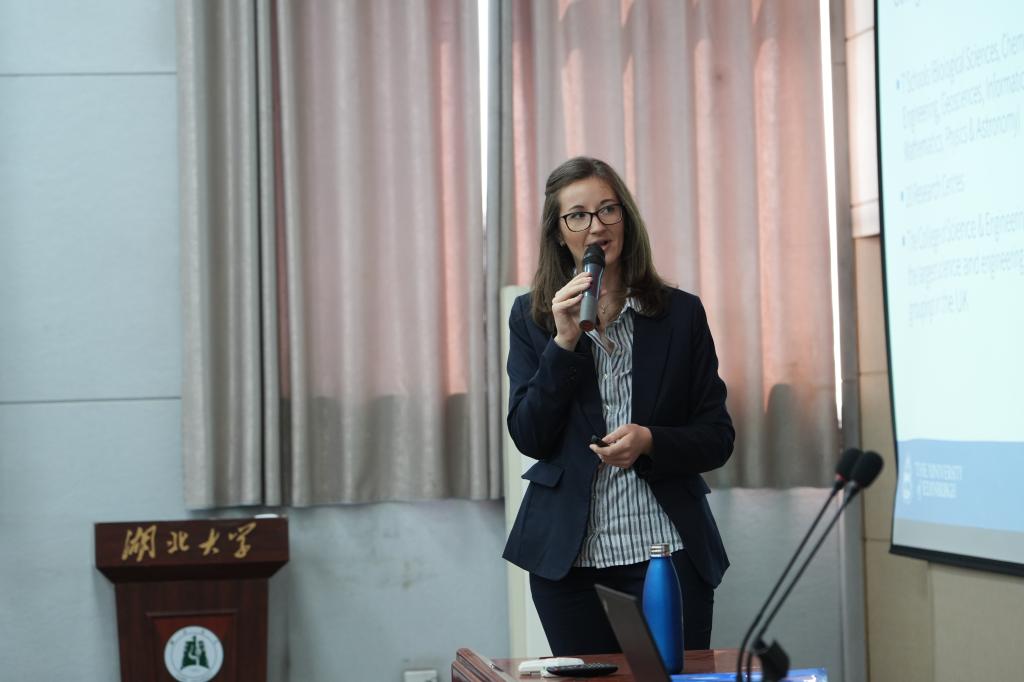 会上,Francesca Coates介绍了爱丁堡大学所处的地理位置及其交通、气候等,并对爱丁堡大学的学校建设、科研投入、学校声誉实力等方面作详细介绍。此次交流会主要是为后续两校留学生的交流搭建桥梁,她详细介绍了3种人才培养模式“2+2”“2+3”“4+1”。学生在我校完成相应学习后便可提交留学申请,毕业后可直接获得湖北大学本科学历和爱丁堡大学硕士学位,并具体地对申请流程、入学学术要求、英语成绩等了细致阐述。
