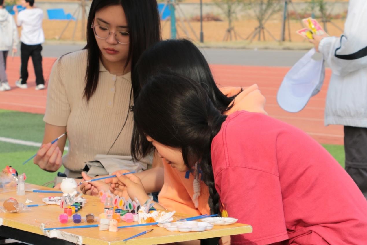 体育场上,丰富多彩的活动吸引了同学们的踊跃参与,其中,彩绘“石膏娃娃”、书写“心愿明信片”等活动给同学们提供了动手体验的机会。此外,现场还设有“通识舞台”,为动漫社、魔术社和笛箫社等社团提供了展示的平台,精彩的表演活跃了现场的氛围。