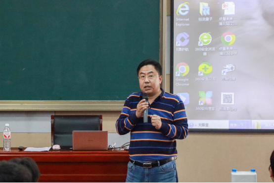 “量子是什么?”罗志勇以设问开场,为同学们讲解量子力学的概念及缘起,并进行量子保密通信及其应用场景科普。罗志勇将生涩难懂的量子科学知识巧妙代入学生们熟悉的生活场景,让科学知识变得“平易近人”。在互动环节,学生们纷纷举起手提出关于学业规划以及专业前景的相关问题,罗志勇一一予以认真解答。