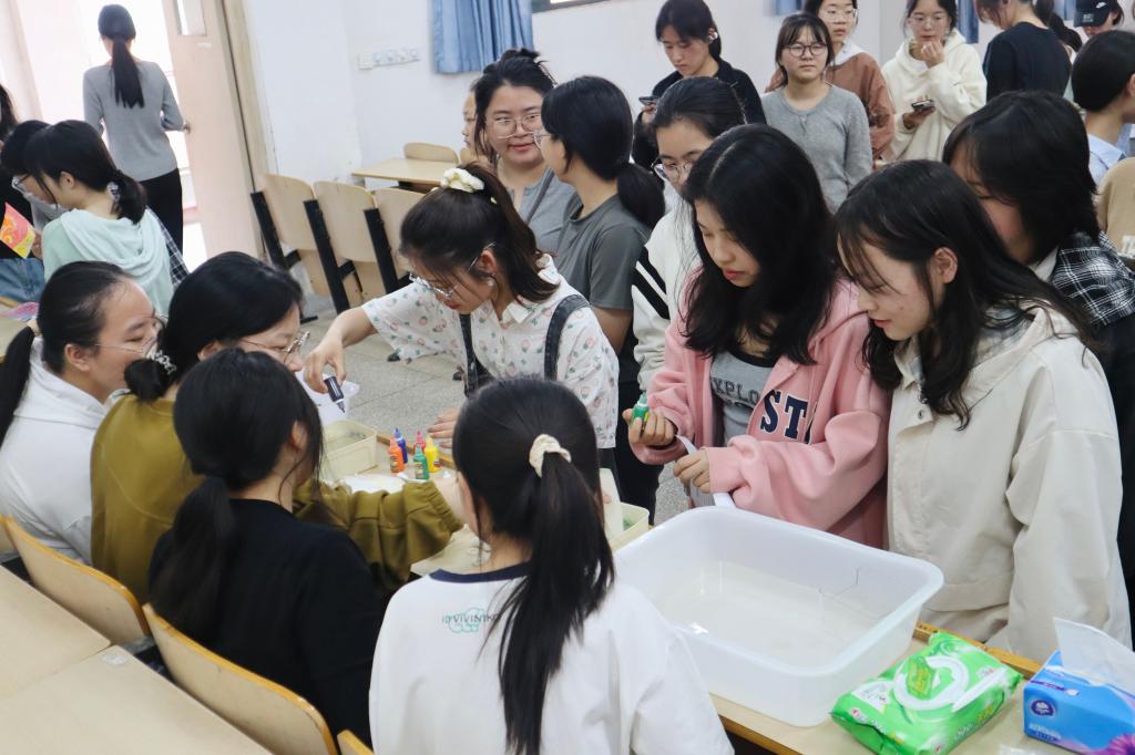 “颜料在画液中的流动十分具有偶然性和创意性,对于从未接触过水拓画的我来说实在是太惊喜了。”2023级外国语言文学类学生郭馨怡感叹。“今天大家都是印象派大师。”灯虎协会阳逻分会会长彭锦容笑着说。