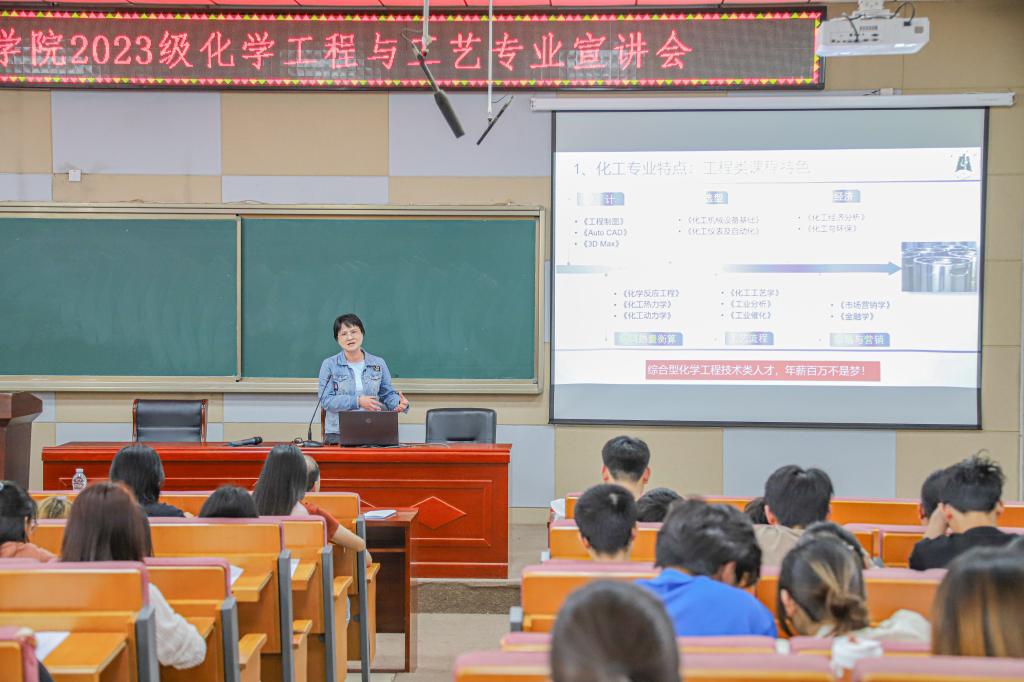 “生活中处处皆化工,化学工程与工艺专业有着大好的前景。”龙华丽老师从专业特点、师资力量、学生培养质量、学生就业前景和升学质量五个方面对化学工程与工艺专业进行了系统介绍。
