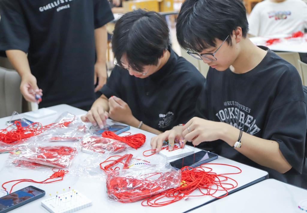 “中国结不仅是美的形式,更是一种自然灵性与人文精神的表露,代表着团结、幸福和平安。”张文婷介绍。“把一根绳反复穿来穿去实在太考验眼力和耐心了。”2023级人工智能专业学生康成希说,“我也希望我的心意能在每一织每一结中体现出来。”