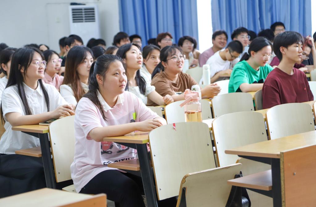 提问环节,张驰着重解答了学生关心的宿舍分配、导师分配、管理方案等问题。“我们师范学院有全校独一份的‘双班主任’管理制度,两个班主任分别从学科学习和生活方面为学生提供针对性帮助。”他自豪地解答。彭璇则回答了相关入党事宜,并简要介绍了师范学院学生未来就业前景。