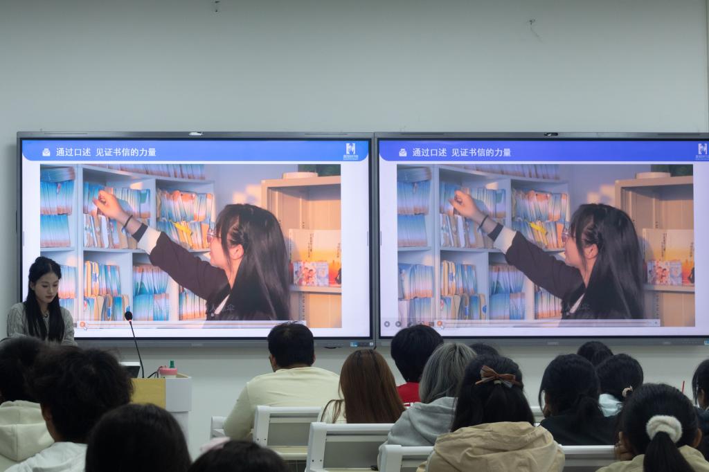 活动中,李奕萱详细介绍了“蓝信封”志愿活动的概况以及“蓝信封”通信大使的报名条件和报名流程。她解释:“‘蓝信封’以10到14岁的青春期孩子为服务对象,志愿者们通过一对一书信交流的方式来倾听孩子们的心声,扮演‘树洞’的角色,帮助孩子们健康成长。”