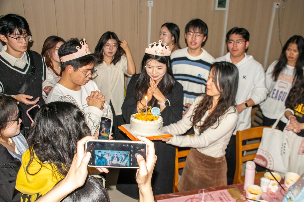 问道书院辅导员张文婷还组织大家一起为即将过生日的两位学生庆祝了生日。“这是他们离开家来到湖大过的第一个生日,我希望能让他们感受到家的温暖。”张文婷解释说,问道书院理工科学生偏多,对于传统文化的认识可能有欠缺,“希望通过这样的方式,可以让同学们玩得开心的同时,感受到中华优秀传统文化的博大精深。”张文婷说道。