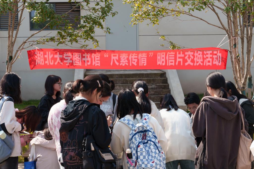 11月6日至7日,由我校图书馆学生管理委员会主办的“尺素传情”主题明信片交换活动在问津苑前举行,吸引了众多学生的热情参与。