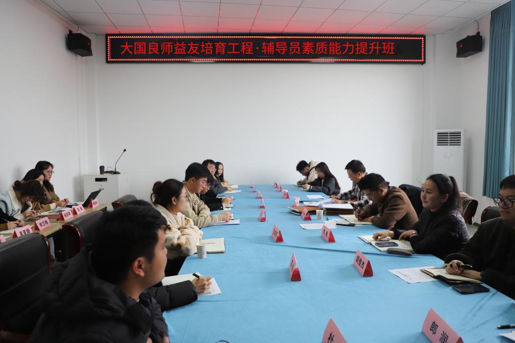 11月25日下午,大国良师益友培育工程·辅导员素质能力提升班第一期在A205会议室成功举办。本次培训班由校学生工作部(处)部(处)长陈腾主讲,全体辅导员参加。