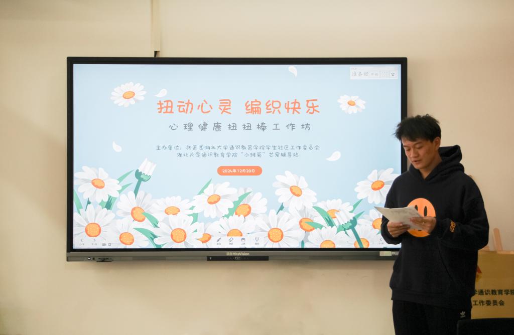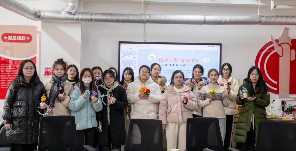 12月20日下午,“扭动心灵,编织快乐”主题心理健康团体活动在我院四五栋连廊处的党员活动室举办。本次活动由我院学生社区团工委与“小雏菊”芯宠辅导站联合主办,团工委指导老师郎润、20名学生代表参与本次活动。