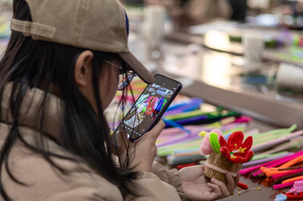 “当投入到扭扭棒的制作中时,我觉得心情变得越来越平静。我想把我制作的扭扭棒盆栽送给我的好朋友,与她一起分享这份快乐。”2024级电子信息类专业学生文欣然笑道。