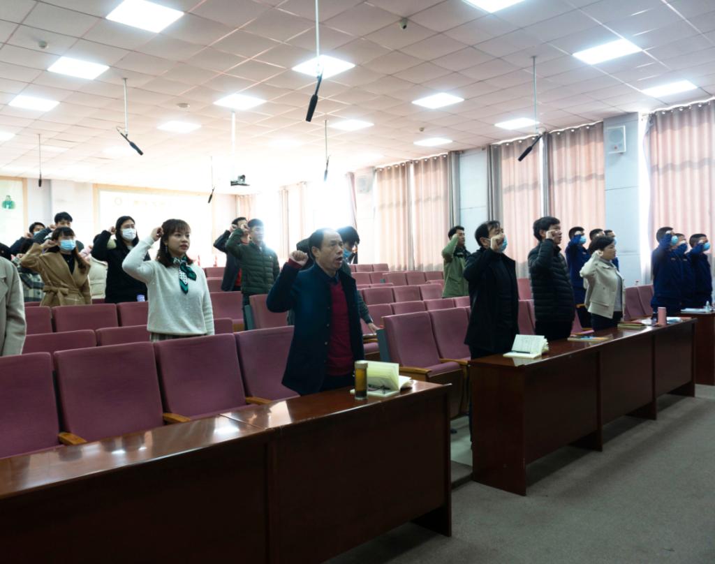 活动伊始,各党支部汇报了到会情况和党费交纳情况。全体党员齐唱国歌,辅导员黄河带领与会党员重温入党誓词。