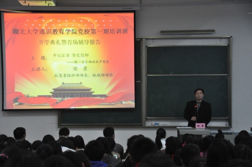 3月12日晚六点半,A级内射毛片免费的党校第一期入党积极分子培训班举行开学典礼暨首场辅导报告。校党委组织部部长、统战部部长、党校副校长侯勇给师生做了一场题为《牢记宗旨,坚定信仰,争做一名合格的共产党员》的辅导报告。学院党委副书记、党校副书记陈腾主持本次报告,学院党委书记、党校校长高天琼在大会上发言。254名入党积极分子听取了报告。