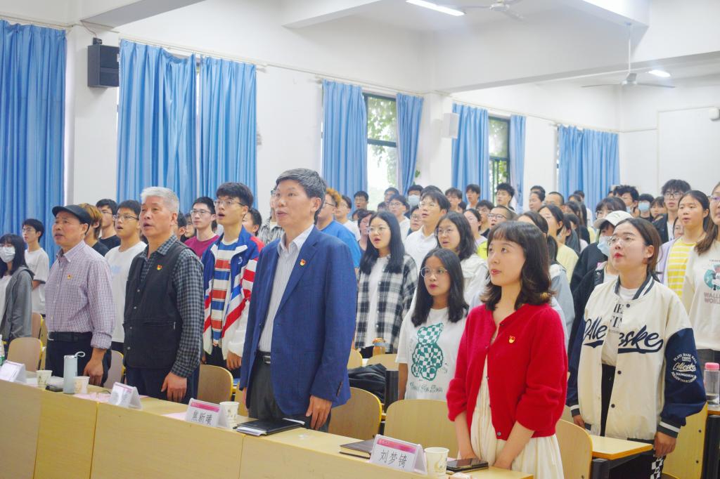 大会开始,全体与会成员起立并奏唱国歌。接下来,由学员代表李钰婷发言。她表示将在未来的学习生活中密切联系实际,力所能及地参与志愿服务和社会实践,学以致用,脚踏实地,真抓实干,以集体利益为重,为同学们服务。