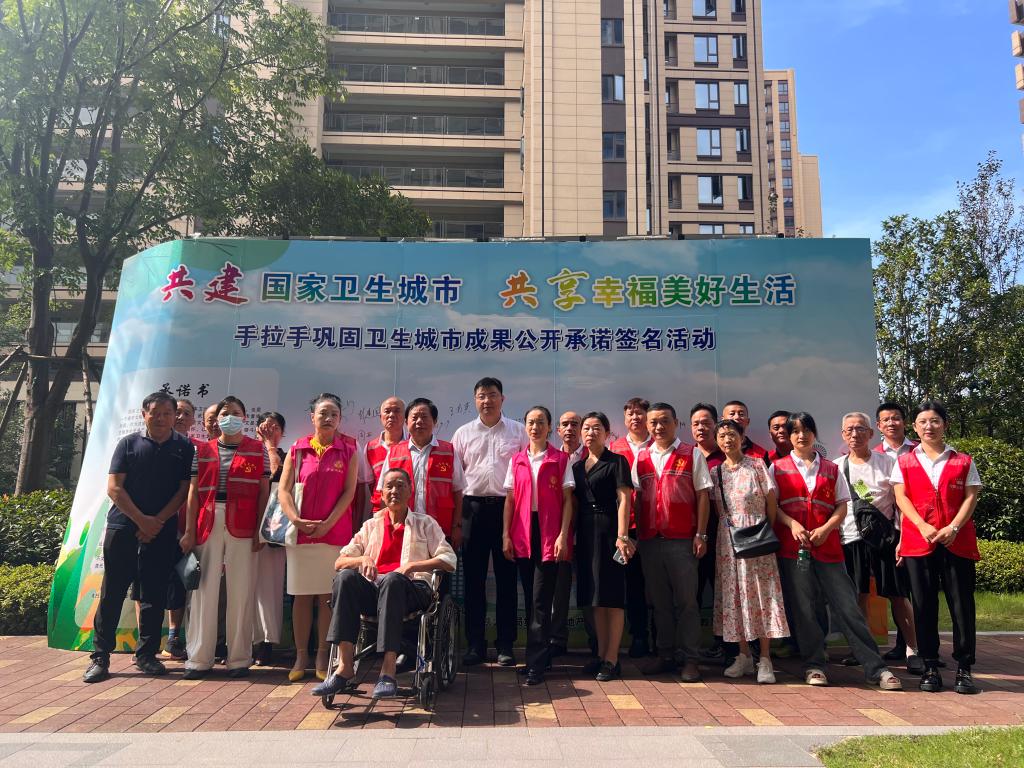 会后,与会人员一行参观了百瑞景滨江生活区“邻里客厅”活动室,开展“手拉手巩固卫生城市成果公开承诺签名活动”,并在湖北大学阳逻校区西北门开展环境卫生整治活动。