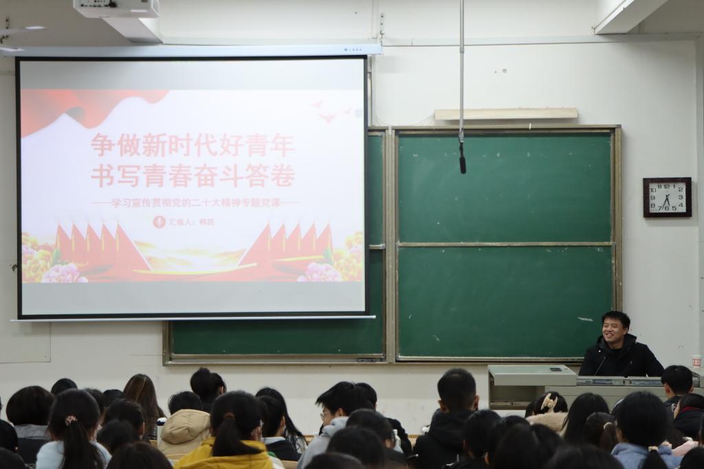首先,韩凯为全体学员作题为《争做新时代好青年,书写青春奋斗答卷》的辅导报告。他以党的二十大为背景,从“追随理想之光”“扛起青春责任”“经受风雨洗礼”“嘹亮奋斗号角”四个方面介绍了广大青年应如何贯彻落实党的二十大精神及新时代下青年的历史使命和责任担当。韩凯强调,入党积极分子要紧紧围绕党的二十大所确定的各项重大目标、重大战略、重大部署,自觉加强政治理论学习,坚定不移听党话、跟党走,立志做有理想、敢担当、能吃苦、肯奋斗的新时代好青年。