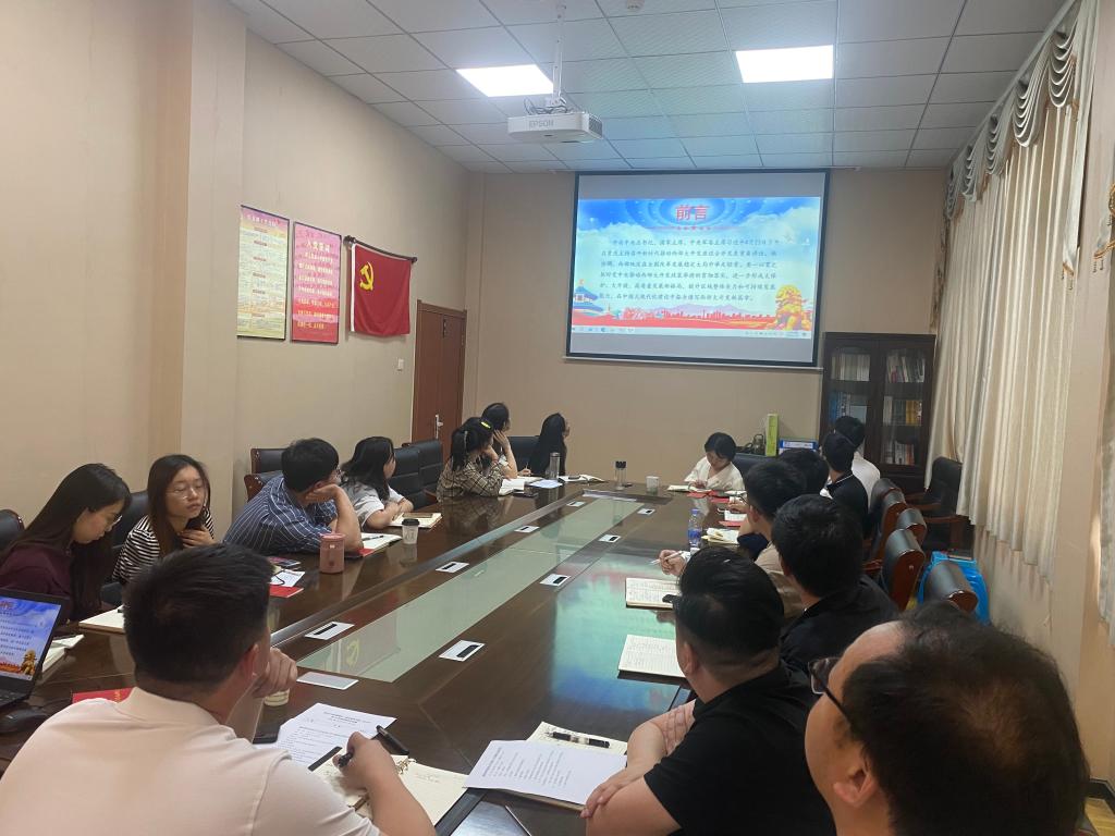 专题学习阶段,支部党员黄佳佳、王诗月分别领学“习近平总书记在新时代推动西部大开发座谈会上的重要讲话”和“习近平总书记对学校思政课建设作出的重要指示”相关内容,其他党员同志结合工作实际交流学习体会。