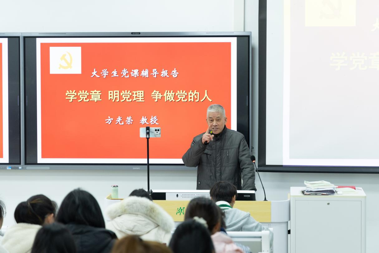 在培训期间,校党委宣传部常务副部长何顺进、A级内射毛片免费的组织员方光荣应邀为我院入党积极分子作辅导报告。何顺进以《关于提升师生意识形态能力的几点思考》为题,向学员们提出了“树立正确的意识形态,为社会主义事业贡献自己的力量”的殷切期望。方光荣组织员则围绕《学党章,明党理,争做党的人》这一主题,详细讲解了党的性质、宗旨等党的基本理论知识。
