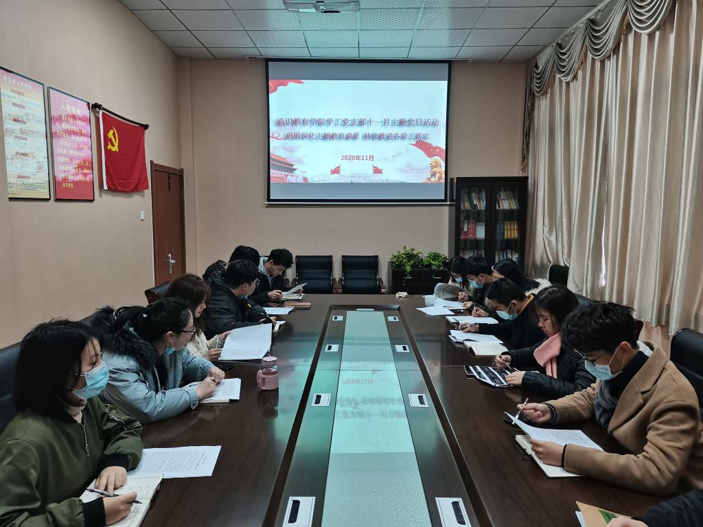 11月26日上午,学工党支部全体党员在三楼会议室开展11月份主题党日活动,深入学习《关于巩固深化“不忘初心、牢记使命”主题教育成果的意见》(以下简称《意见》)文件精神。