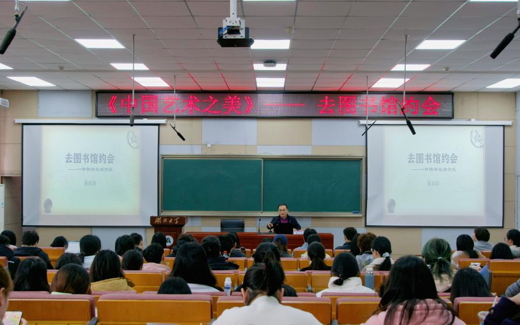 “一馆一世界,一书一精神。”3月9日上午,湖北省作家协会党组成员、副主席蔡家园应邀到湖北大学阳逻校区,讲授本学期通识教育选修课《中国艺术之美》第一讲——“去图书馆约会”。