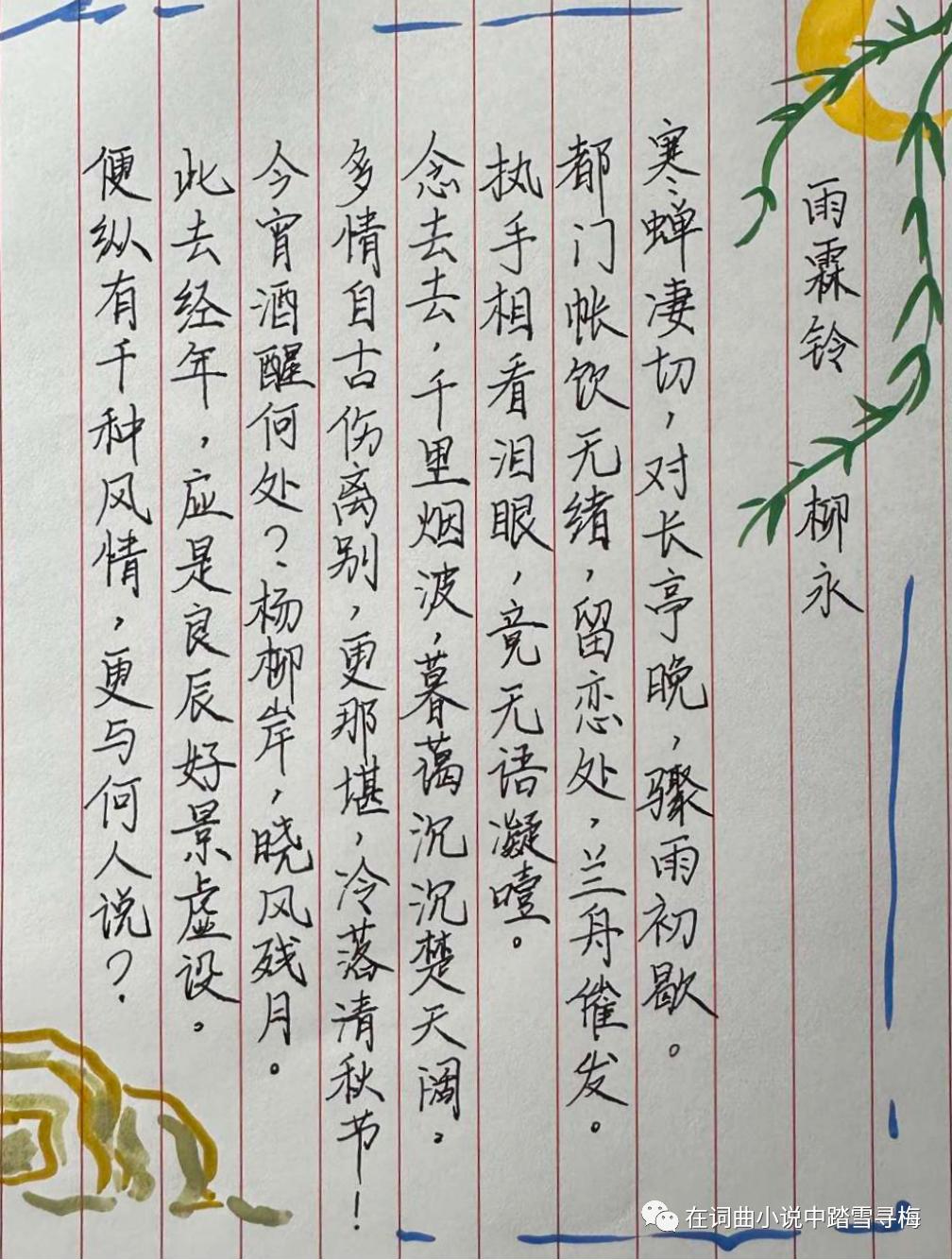 23汉语言文学玄沐可:柳永《雨霖铃》