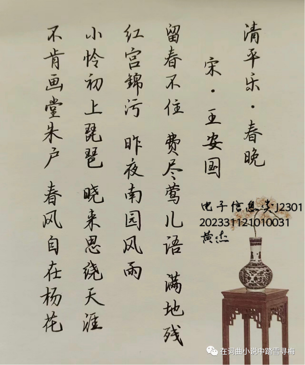 23电信黄杰:王安国《清平乐》
