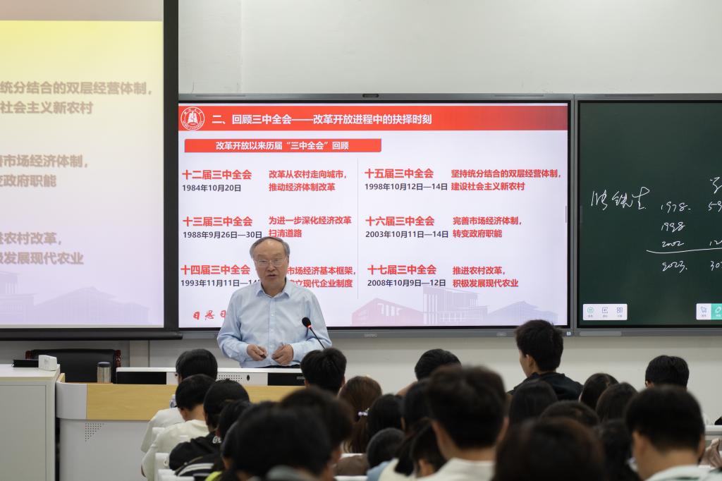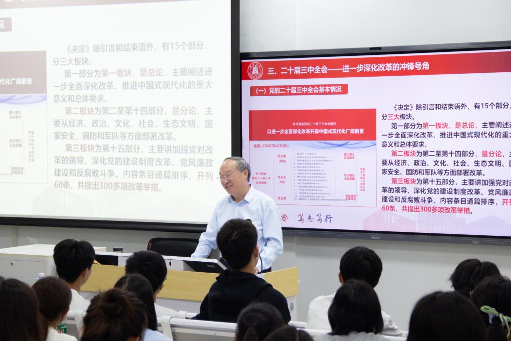 谢红星还带领同学们逐一回顾了从党的十一届三中全会到党的二十届三中全会历次三中全会期间,中国共产党所作出的一系列具有重大意义的决策。他指出,通过不断地对内改革和对外开放,中国社会主义市场经济体制不断完善,各领域基础性制度框架得以建立,党的二十届三中全会更是进一步吹响了深化改革的冲锋号角,提出紧紧围绕推进中国式现代化,进一步全面深化“八大领域”改革的总目标,推动我国迈上全面建设社会主义现代化国家新征程。