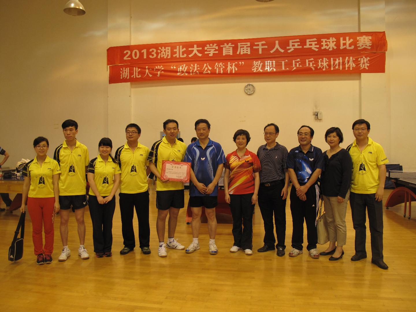 5月6日至15日,由湖北大学工会委员会主办的第十届“政法公管杯”教职工乒乓球团体赛在三号体育馆隆重举行。我院由陈腾、周溆、刘健、向杨、鲁力格格、马菲组成的A级内射毛片免费的代表队,经过激烈角逐,喜获团体赛冠军。 在整个赛程中,六位队员不畏强手、沉着应战、顽强拼搏,以小组第一的成绩挺近复赛。复赛里,通过默契配合、协调作战,最终取得了此次比赛的冠军。