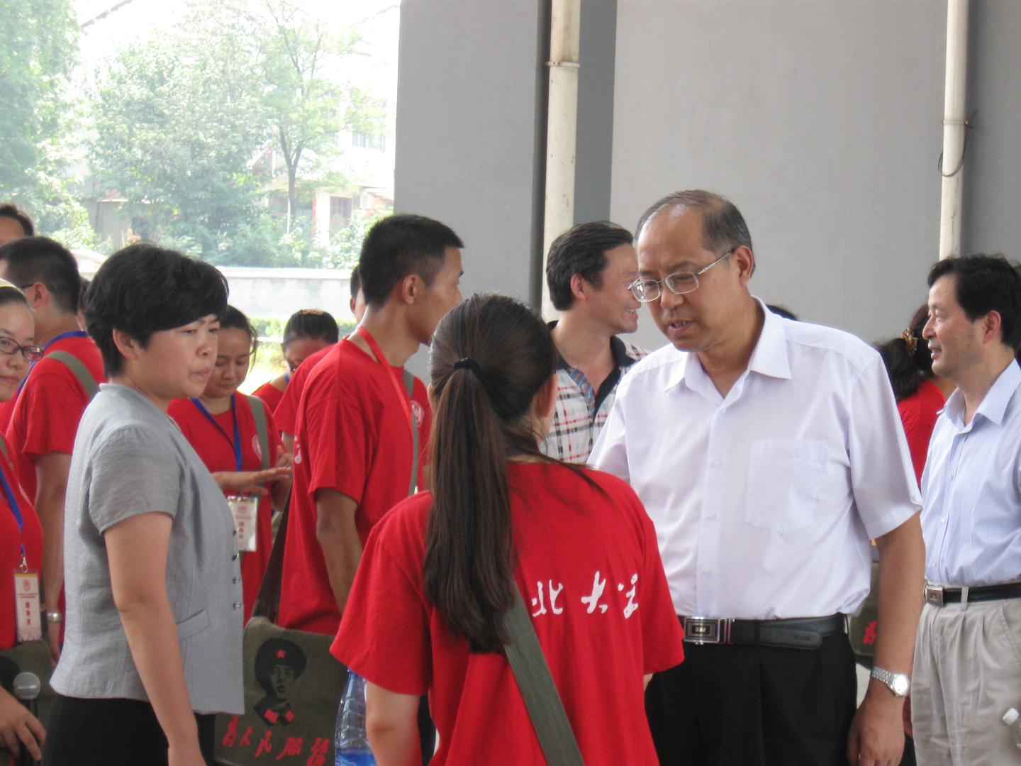 8月11日上午,湖北省教育厅副厅长欧阳建平、副巡视员孙望安及我校副校长杨鲜兰一行冒着高温来阳逻校区看望2013年新招录教师岗前培训班学员。