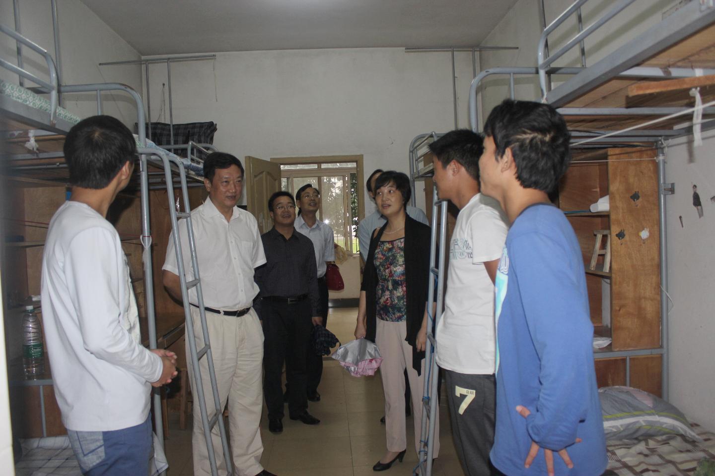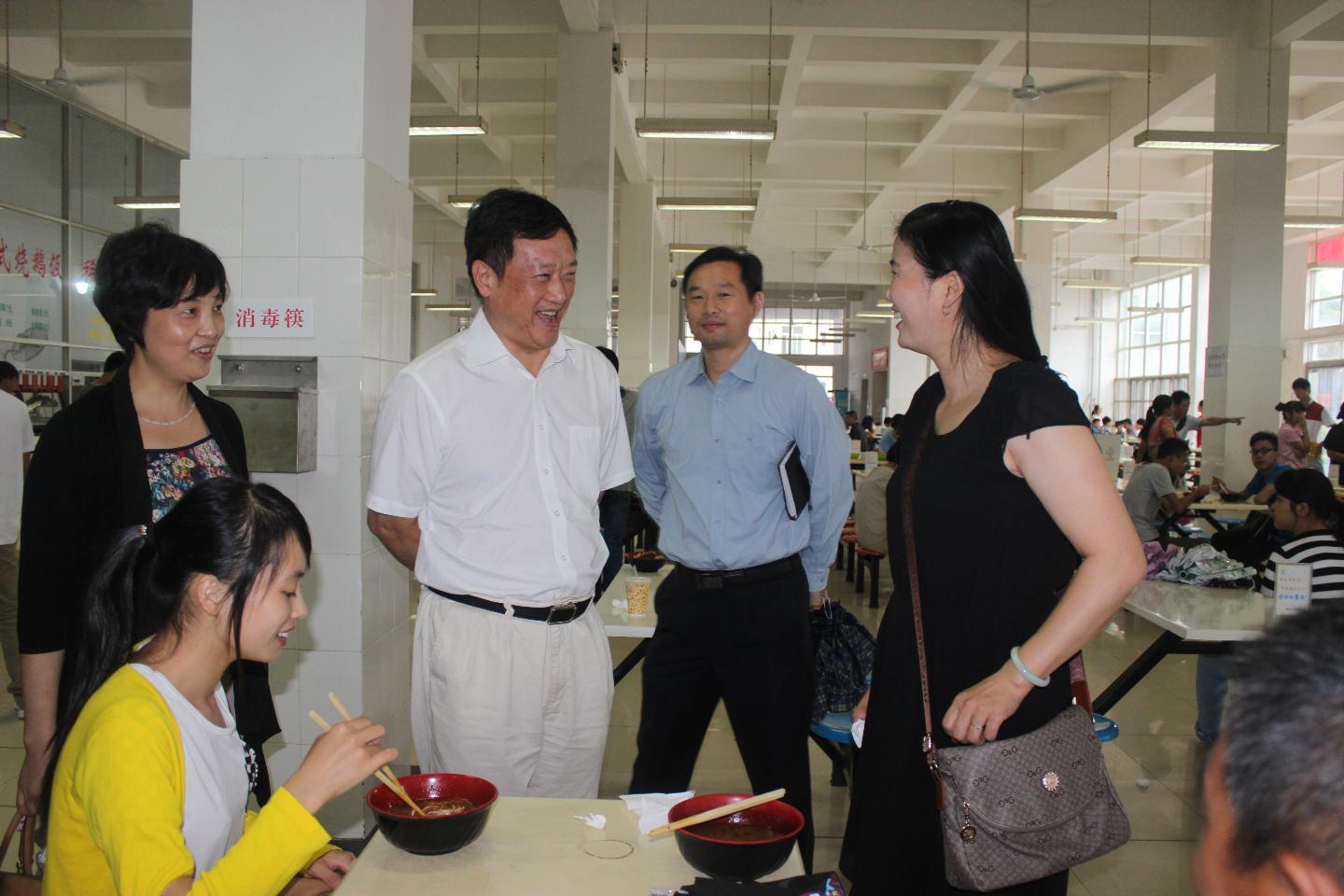 熊健民一行听取学院负责人对迎新工作、开学准备工作及党的群众路线教育实践活动的汇报后,深入迎新现场、学生宿舍、食堂、教室等地检查指导迎新工作及开学准备工作,并与学院工作人员和新生进行了亲切交谈。