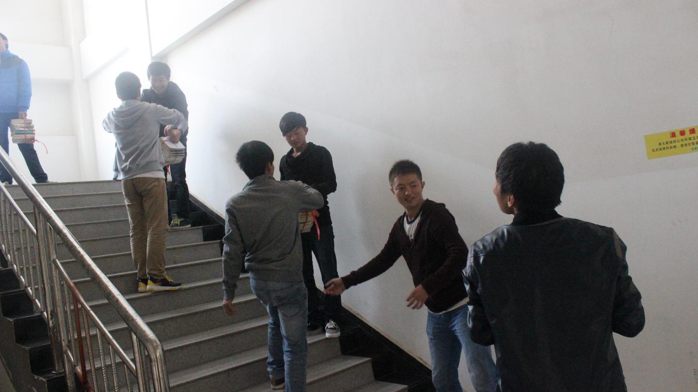 (图为同学们接力搬图书)