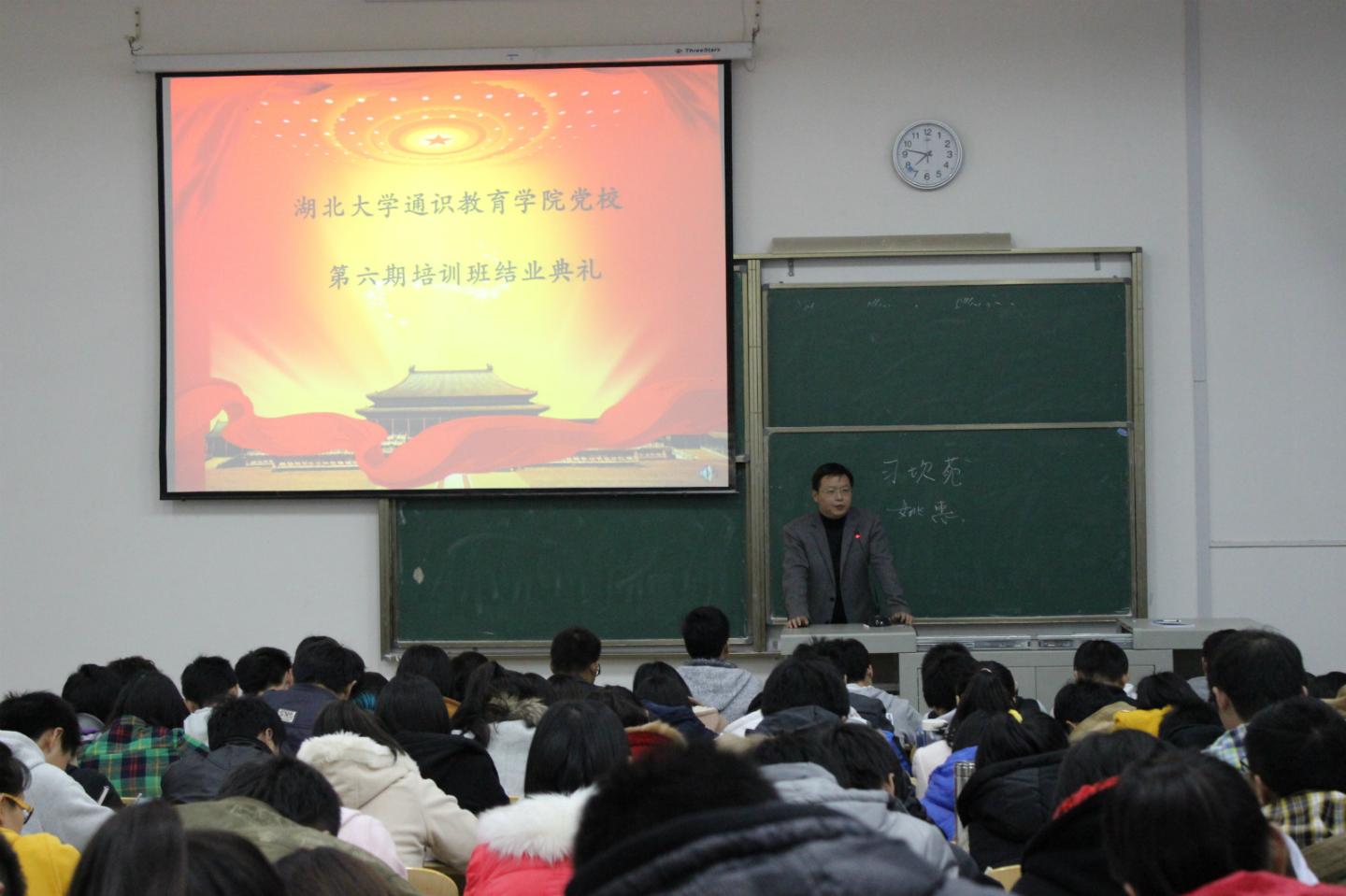 陈腾在作总结发言时指出,学员们在接受培训后思想认识有了提升,主要体现在对党的认识、入党动机、党员的基本要求与标准、入党信念和努力方向等五个方面。他还对学员们提出五点期望:一是作为青年学生,要肩负起历史使命;二是要加强党性修养,从思想上入党;三是要正确看待、理性分析党内与国家目前存在的问题;四是要正确面对党组织的考验,坚定信念,做好心理准备;五是要回归学生本质,牢记湖北大学“日思日睿,笃志笃行”的校训。