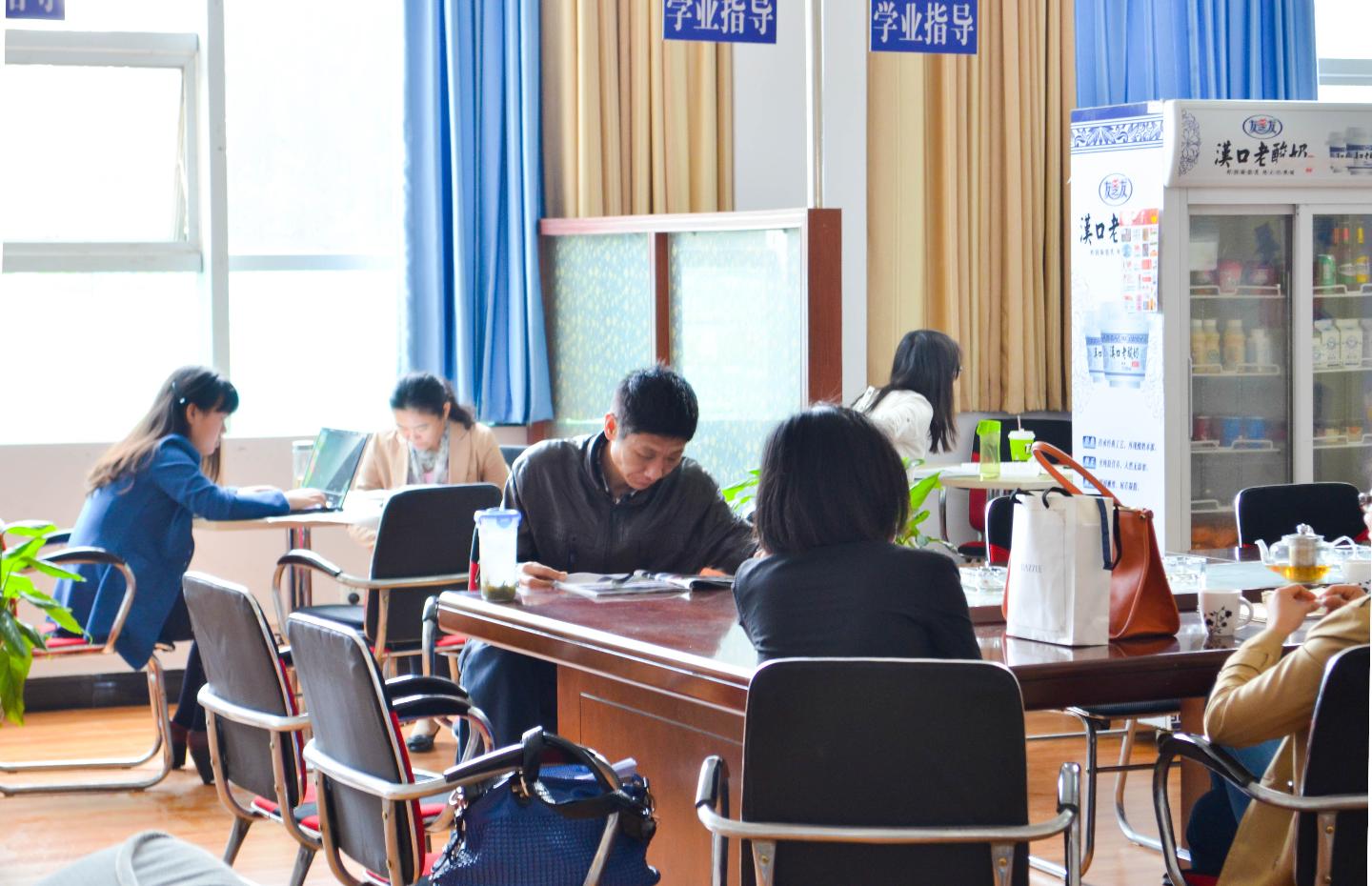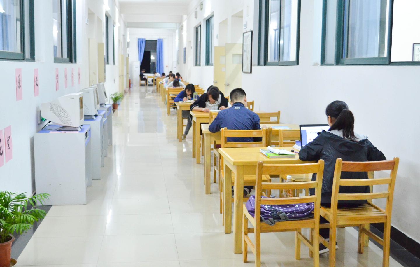 (师生在学业指导室备课、学习)