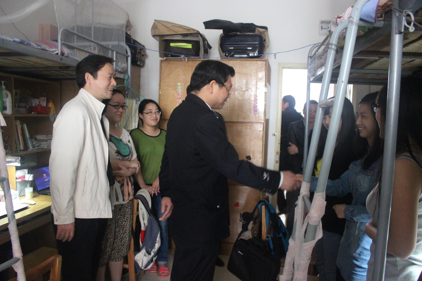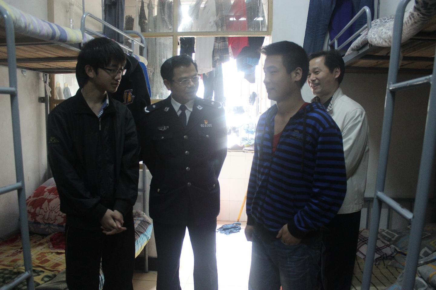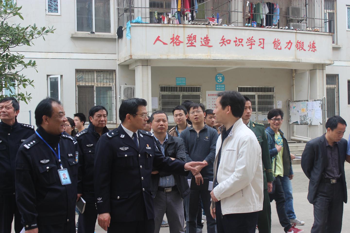 4月11日上午,新洲区委常委、公安分局局长陈卫东在阳逻街派出所、阳逻消防中队、阳逻交巡中队等单位负责人的陪同下来院检查校园安保工作。 检查组一行在学院负责人的陪同下,深入校园实地查看了校园监控系统、学生宿舍,并同学生、工作人员亲切交谈。检查过程中,陈卫东还详细询问了校园监控运行、消防灭火器材设施、食品卫生等方面的情况。