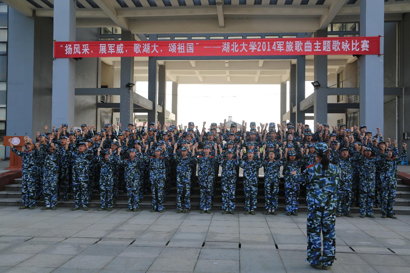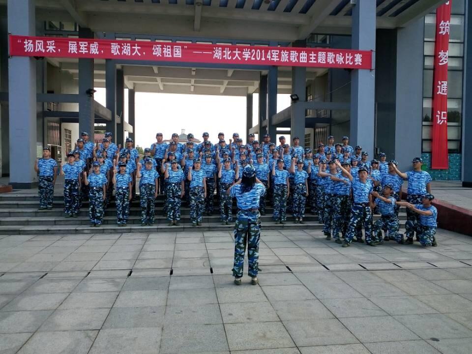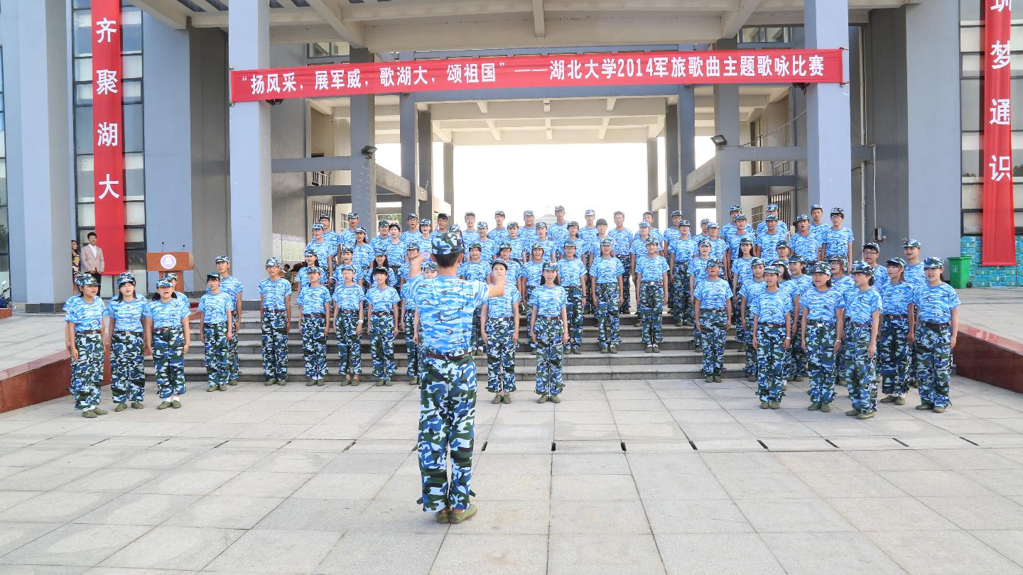为增强新生的国防观念和国防意识,丰富学生文化生活,培养学生集体荣誉感,9月23日下午,由校团委和武装部主办的湖北大学2014 级新生“扬风采,展军威,歌湖大,颂祖国”军旅歌曲主题歌咏比赛在我院行政楼广场举行,共有10个连队参赛,16名校级学生组织成员应邀担任评委嘉宾。