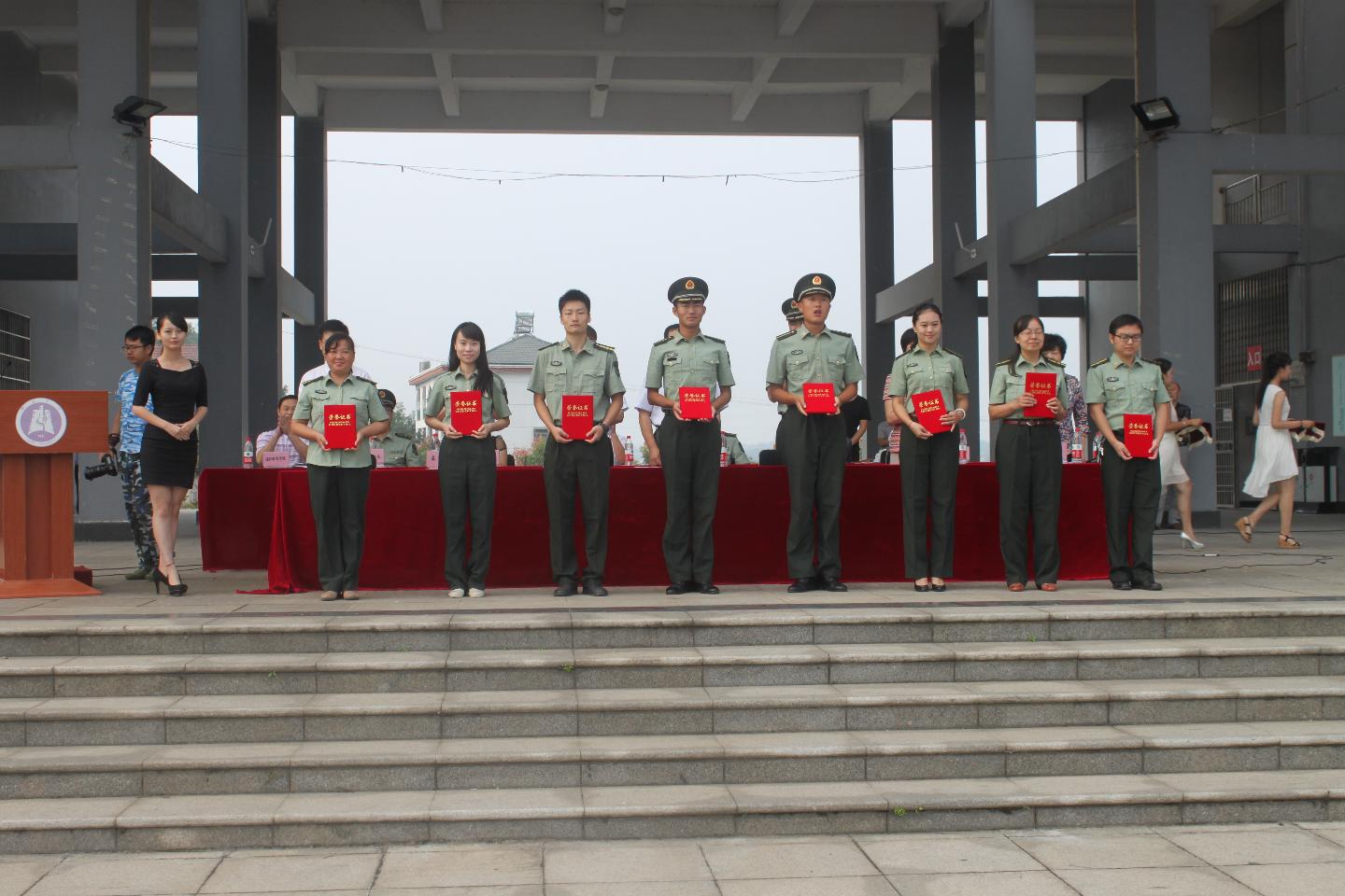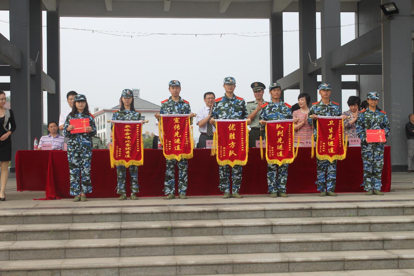 校党委副书记邓长青宣读军训表彰文件。一连二方队等6个方队被评为“优胜方队”、三连等6个连队被评为“队列先进连”、三连等6个连队被评为“宣传先进连”、二连等6个连队被评为“卫生先进连”、一连等6个连队被评为新生“军旅歌曲”主题歌咏合唱比赛优秀连队,李冰欢等10名教官、魏文杰等6名指导员、刘枫等292名学生分别被授予“优秀教官”、“ 优秀指导员”、“ 优秀学员”称号。