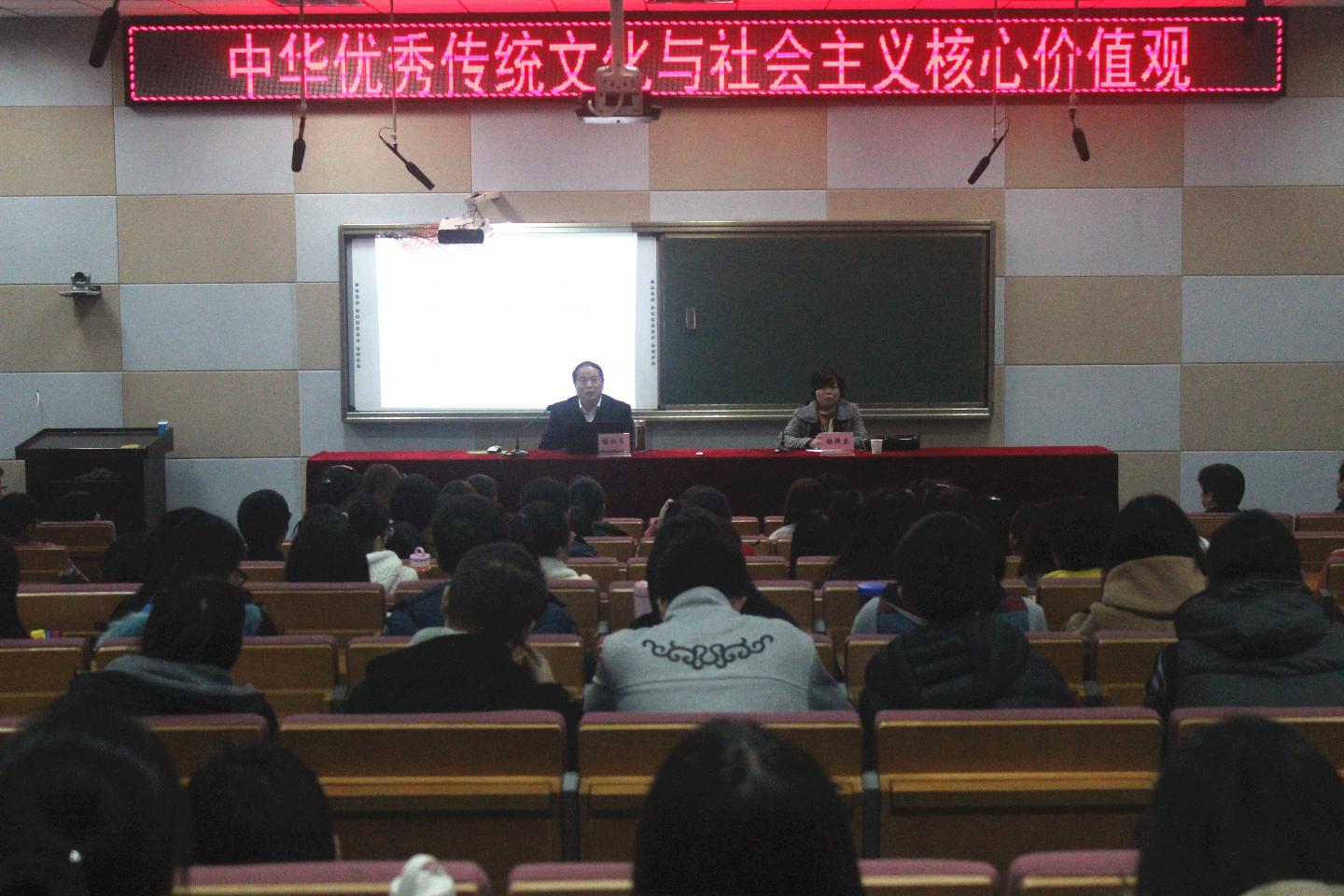 3月18日下午,湖北省社会主义学院党委委员、副院长桂汉良教授应邀做客学院问津大讲堂,以《中华优秀传统文化与社会主义核心价值观》为题,为现场200名师生作了一场精彩报告。报告由副校长杨鲜兰主持。