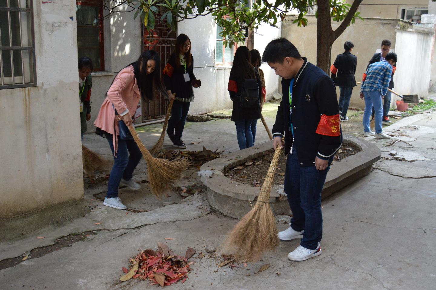 授牌仪式结束后,学生志愿者在商东社区开展了“微力量”志愿服务活动。志愿者们分批清扫社区公共卫生,走进社区养老院,为老人送去温暖。