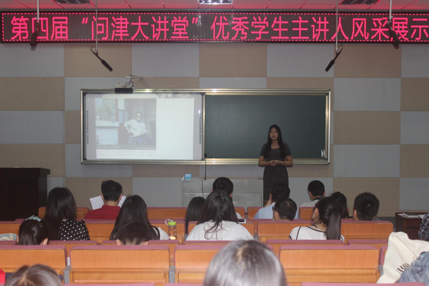 5月14日上午,学院开展第四届“问津大讲堂”优秀学生主讲人风采展示活动,8名优秀学生主讲人依次登台演讲。院领导及辅导员参加活动。