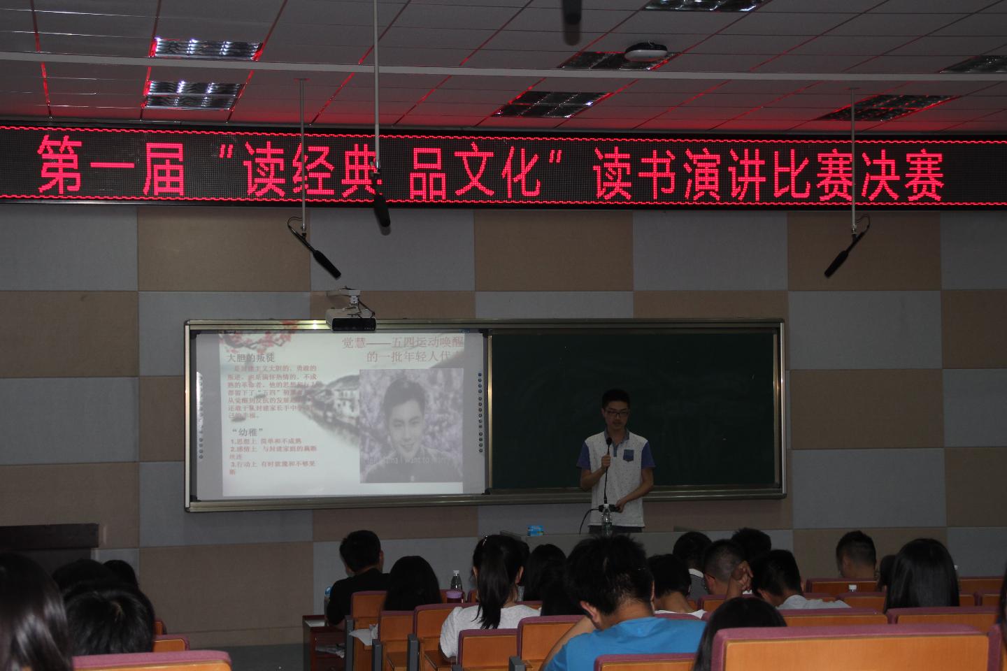 5月20日晚,学院“读经典·品文化”读书演讲比赛决赛顺利举行,13位选手代表各自习苑开展激烈角逐。16位辅导员参加评审。