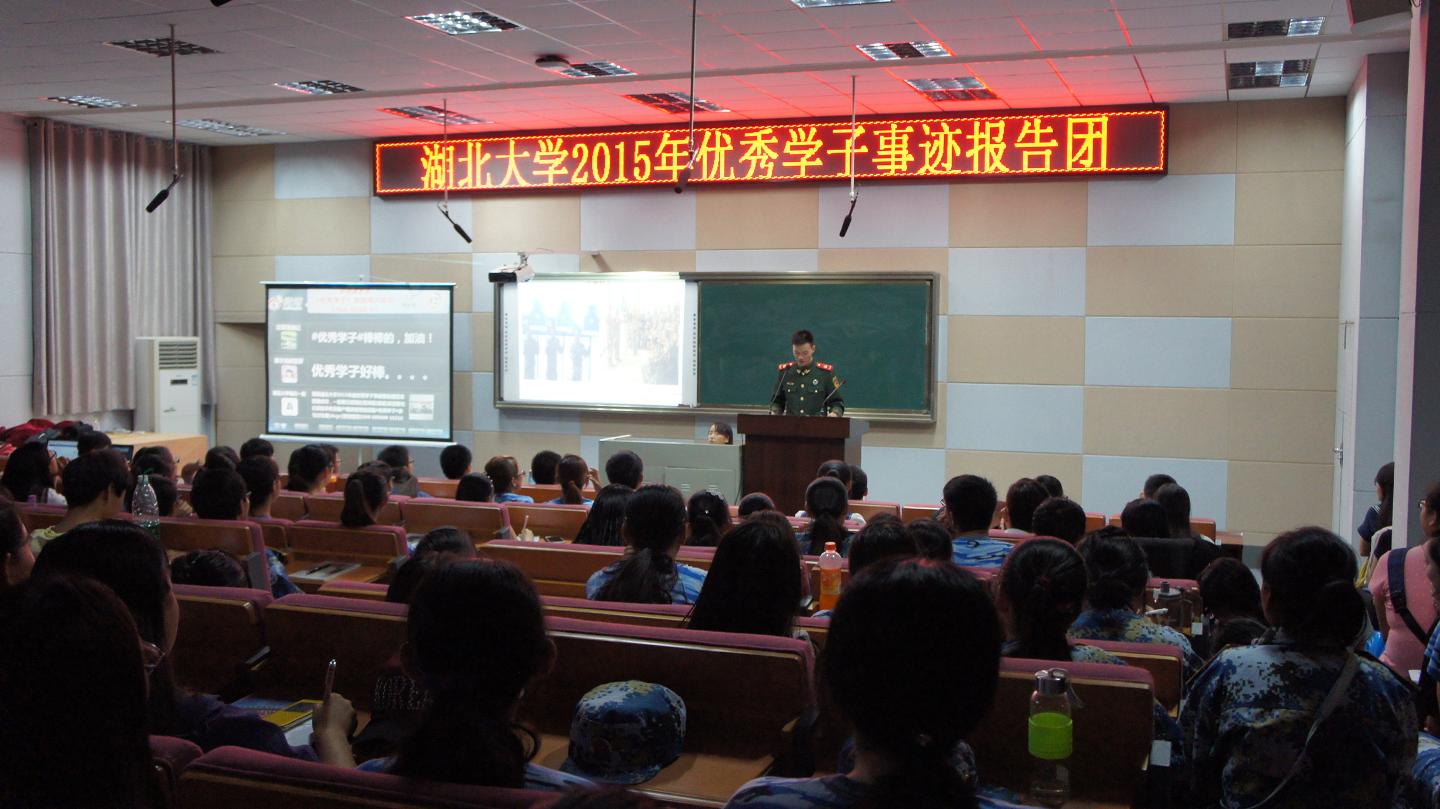 9月21日晚,由学工处主办、新闻传播学院承办的“湖北大学2015年优秀学子事迹报告团活动”在我院举行,7名优秀学子结合自身亲身经历讲述了各自丰富多彩的大学生活,与2015级新生分享成长体会与心路历程。