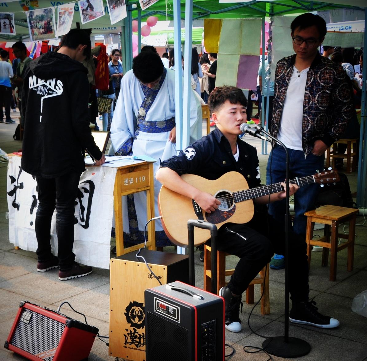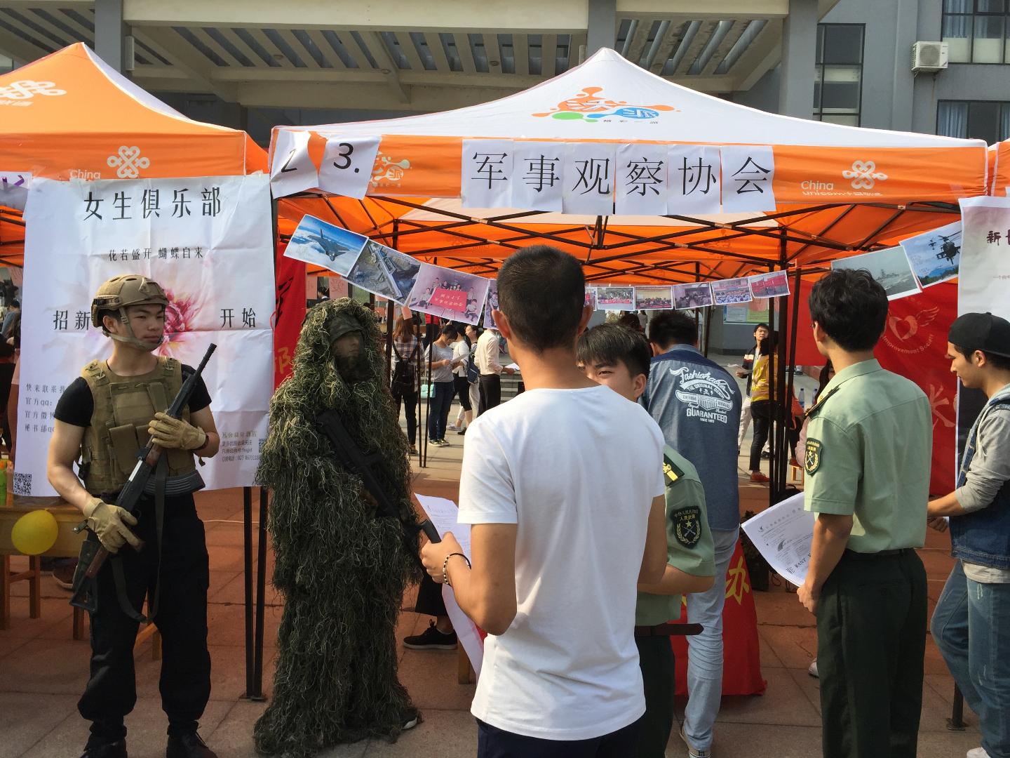 广场最左侧滑轮成员们凌波微步的表演,军事观察协会的招新人员全都穿着军装赚足了眼球,FD动漫社现场表演起了cosplay,文学社的才女们身穿民国装带你玩穿越,笛箫协会更是吹起了《花千骨》主题曲……