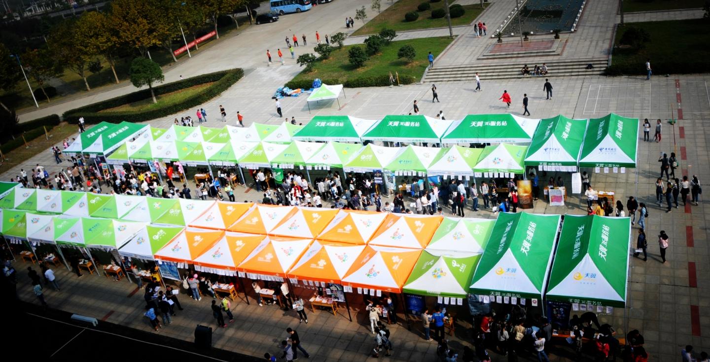 “社团招新啦!”“同学,欢迎加入跆拳道社。”“同学来看看我们的招新信息快加入我们吧”10月24日,由社团联合会承办的“百团大战”社团招新在学院行政楼前举行。参加此次活动的社团共有71个。招新现场热闹非凡,各大社团各显神通,引来2015级大一新生驻足咨询。