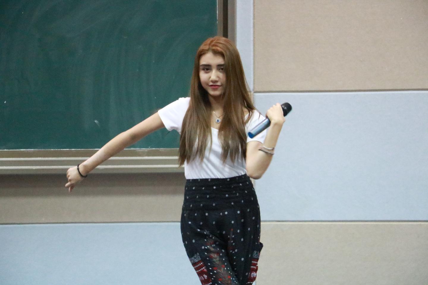 此次比赛的看点除了选手们的英语语音风采,才艺展示也异彩纷呈。2号选手蔡卓宇的《雷雨》配音,10号选手包笑盈的吉他弹唱,以及12号选手郑越洋声情并茂的演讲,屡屡使台下爆发出掌声。在比赛行将结束之际,最后出场的新疆姑娘艾丽菲热带来了一曲极具异域风情的《te amo》。美妙的歌声,顾盼多情的眼神和动人的舞姿,博得现场阵阵掌声和喝彩。