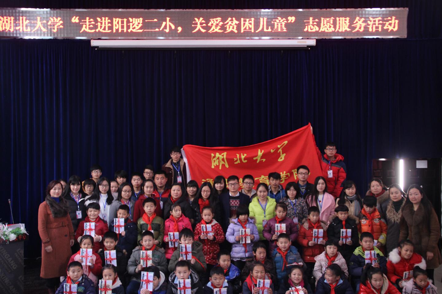 12月18日上午,我院21名志愿者走进阳逻街第二小学,举行了以“走进阳逻二小,关爱贫困儿童”为主题的文具捐赠仪式活动。何斯婕,甄国辉,严秀红三位老师带队参加了此次活动。