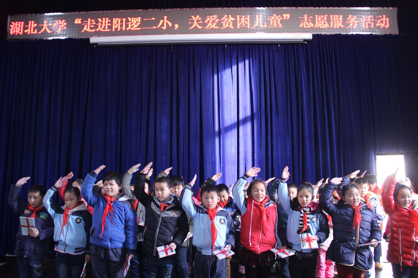 阳逻二小是阳逻地区小学教育的排头兵,学生数量多,有很多家庭贫困者,我院志愿者协会在指导老师甄国辉的号召下,联合戴尔课戴表,本着“奉献,有爱、互助、进步”的志愿者精神,在年末之际为二小同学送上新年祝福。