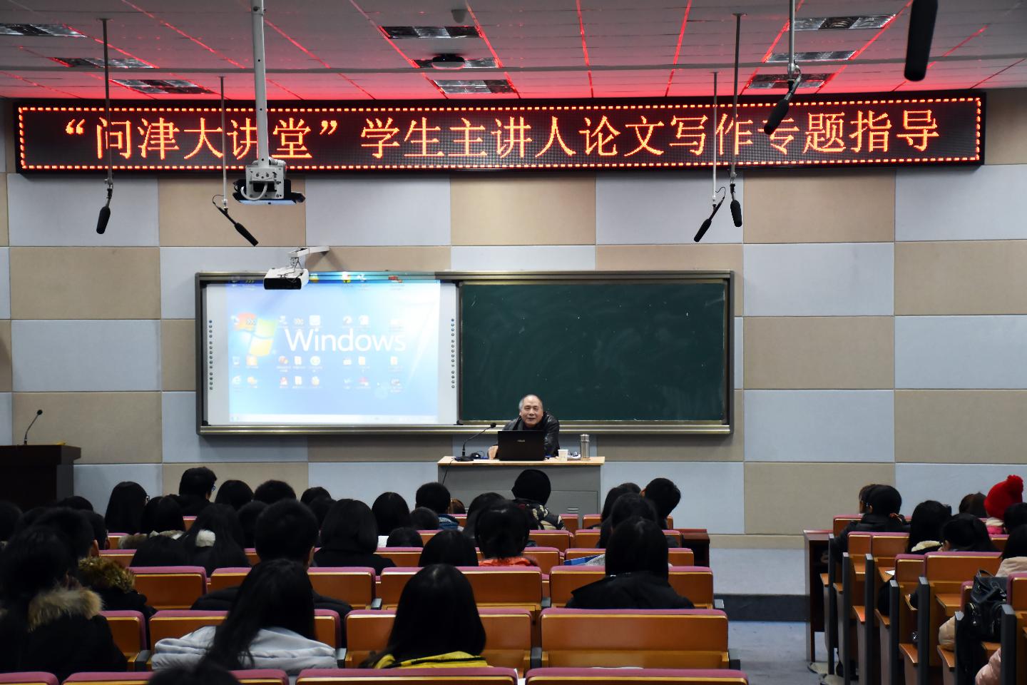 12月23日,湖北大学陈阳凤教授应邀来院,为进入第五届“问津大讲堂”学生主讲人评选活动复赛的196个团队进行论文写作专题指导。