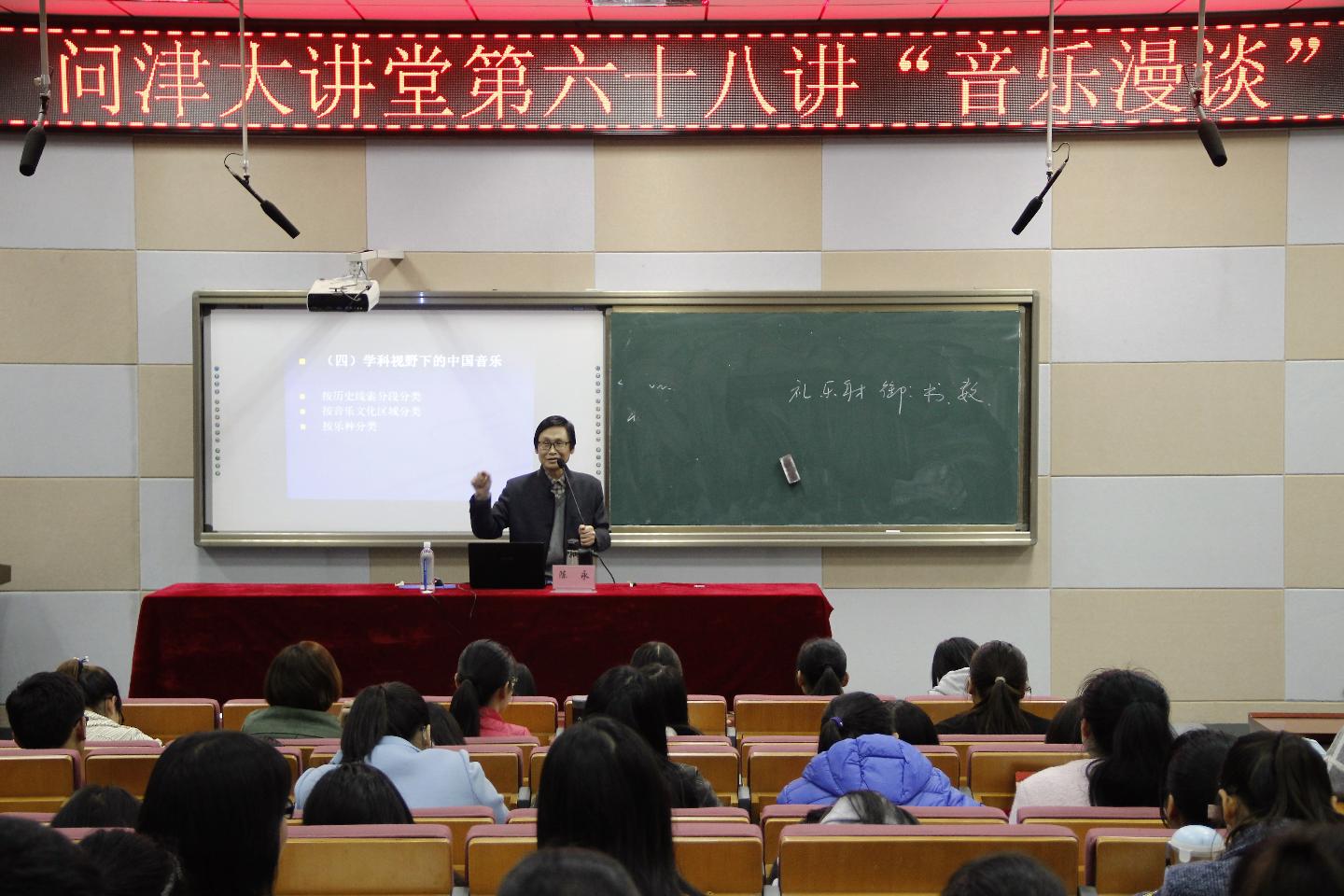 3月31日晚,华中师范大学音乐学院陈永教授应邀做客A级内射毛片免费的问津大讲堂,作了“音乐漫谈”主题报告。