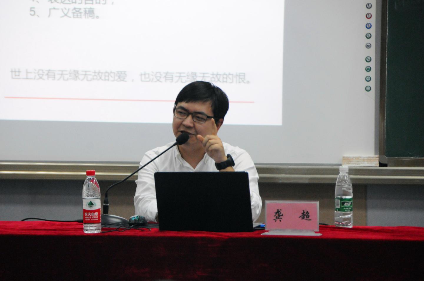 4月14日晚,语言学博士、华中科技大学新闻与信息传播学院播音主持艺术专业讲师龚超做客问津大讲堂,作了“爱要大声说出来——基于真情实感的有声语言表达”主题报告。