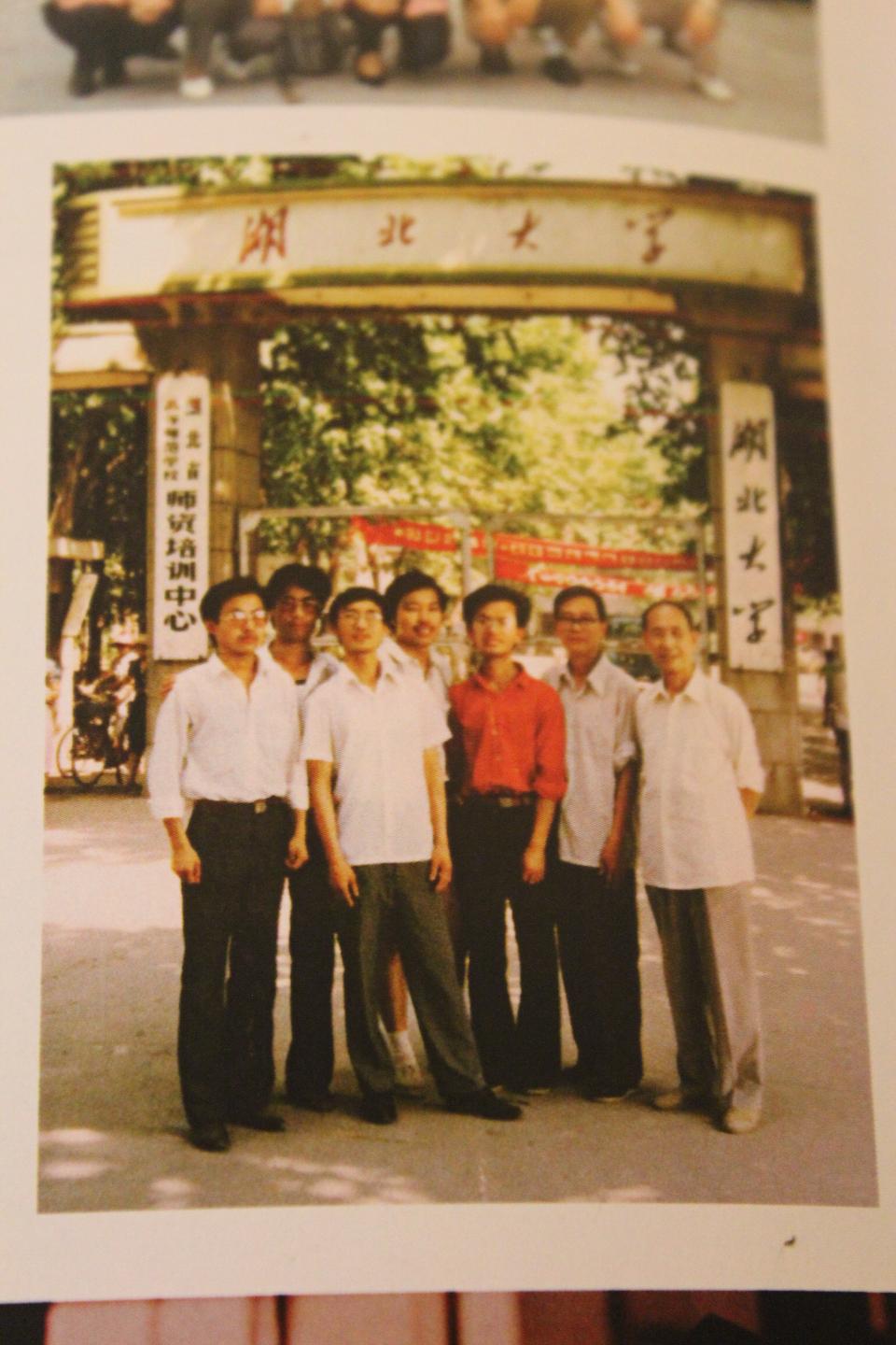 (图为20世纪80年代黄邦和教授(右一)和研究生们在湖北大学老校门)