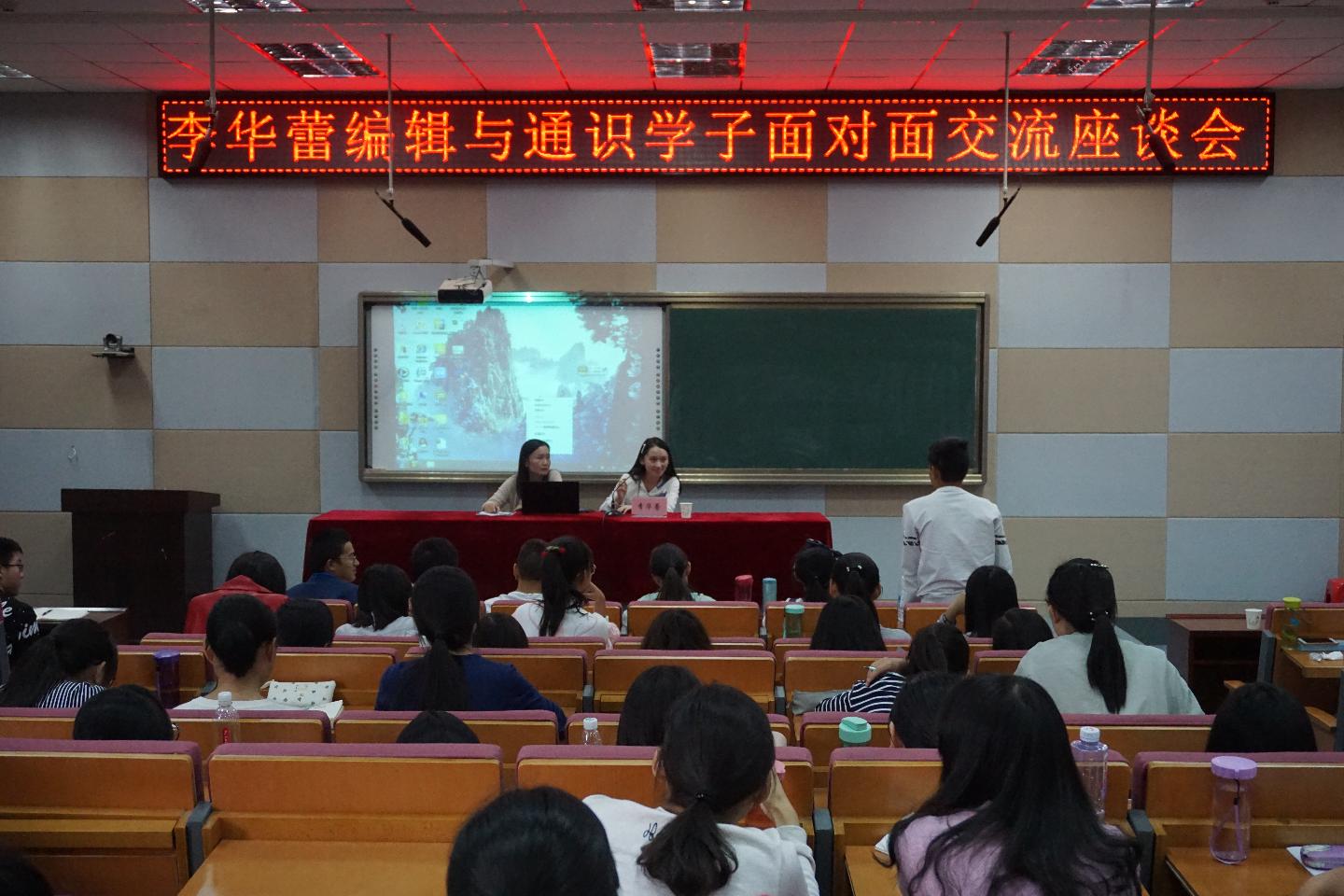 10月10日下午,今日湖北杂志社总编室主任、今日湖北网副总编辑李华蕾应邀来到A级内射毛片免费的,在B300录播教室与通识学子开展面对面学习交流,分享经验。