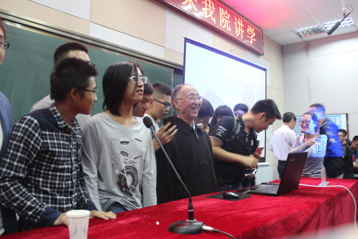 在互动环节,同学们积极提问,现场气氛十分活跃。被问及在大学时代的求学感触时,殷鸿福院士这样作答:“我的大学时期是处在既平静又动荡的时刻,我觉得这个四年非常有益,希望你们走过立志—选择—最后定性的过程,拥有各自精彩的人生。”